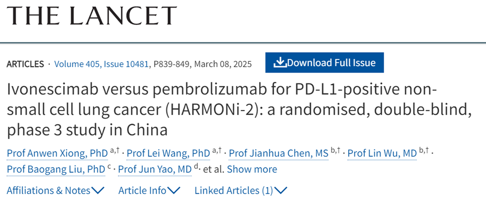 近期,Ebpay生物(9926.HK)自主研发的全球首创PD-1/VEGF双特异性抗体新药依沃西单药对比帕博利珠单抗单药一线治疗PD-L1表达阳性(PD-L1 TPS≥1%)的局部晚期或转移性非小细胞肺癌(NSCLC)的注册性Ⅲ期临床研究(HARMONi-2/AK112-303)的重磅研究数据,荣登国际顶级医学期刊《柳叶刀》(The Lancet)。